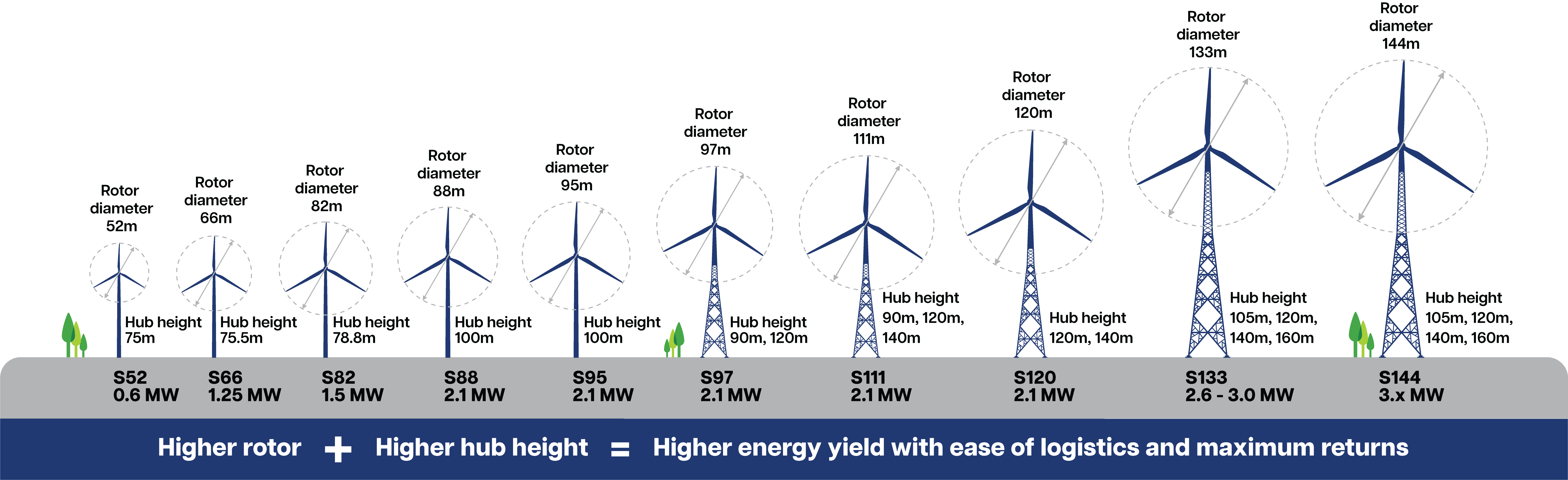 A leader in wind energy space since 1995, Suzlon offers a 360-degree solutions package to its customers that covers the entire spectrum of wind energy projects. With over 13,200 wind turbines installed across six continents and having world-class manufacturing units across India, Suzlon wind energy solutions have become the byword for innovation and competitive advantage. Providing an all-encompassing solution to wind-energy projects in the form of Wind Turbine Generators (WTGs) that are infused with state-of-the-art technology from their blades, nacelle, towers and foundations. These WTGs carry the hallmark of reliability and sustainability and have a proven track record of enabling customers to maximize their return on investments.